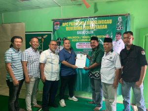 Penyerahan berkas formulir pendaftaran ke Sekretariat DPC PKB Lubuklinggau tersebut diwakilkan kepada Fauzi Aryanto, didampingi Sekretaris DPD Partai Golkar Kota Lubuklinggau, Yani Rizal beserta tim pemenangannya.