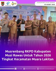 Musirawas-Ketua DPRD Musirawas Firdaus Cik Olah, Senin 3 Maret 2025 bersama Plt. Asisten Perekonomian dan Pembangunan Oktaviano menghadiri Musrenbang Desa/Kelurahan dan Kecamatan Tahun 2025 untuk Rencana Kerja Pemerintah Daerah Tahun 2026 Bertempat di aula kantor Kecamatan Muara Lakitan.