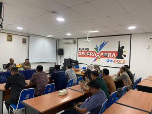 Kepala Dinas Pemuda dan Olahraga (Dispora) Kabupaten Sleman menerima kunjungan tamu dinas dalam rangka konsultasi, koordinasi dan study banding dari Dewan Perwakilan Rakyat Daerah Kabupaten Musi Rawas di Ruang Gelora Pora Dispora Sleman.*