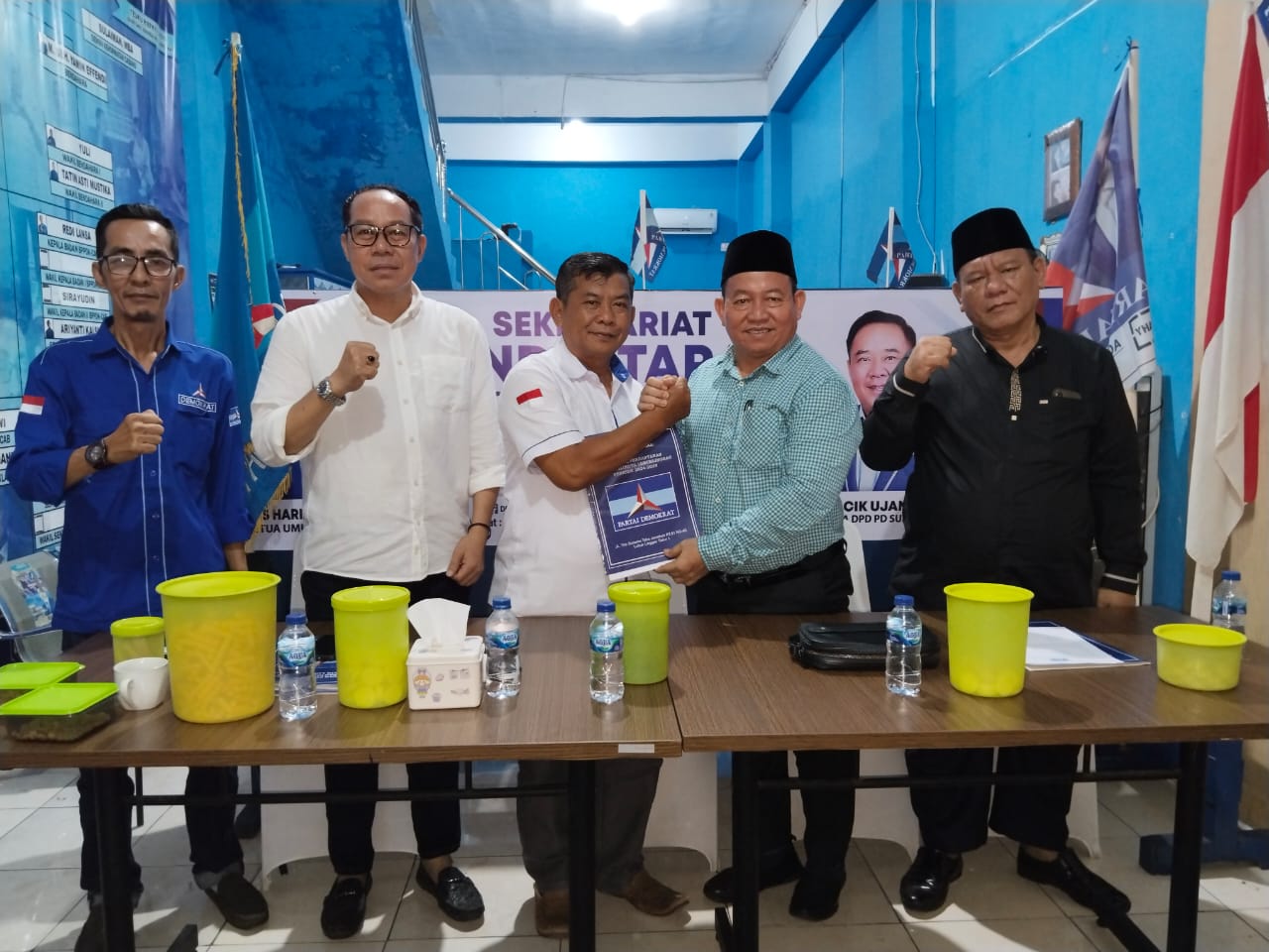 H Taufik Siswanto SE MM didampingi Ketua Panitia Pendaftaran Penjaringan, Merizal serta Sekretaris Penjaringan Isnaini, bertempat di Kantor DPC Partai Demokrat Kota Lubuklinggau, Rabu (24/4).