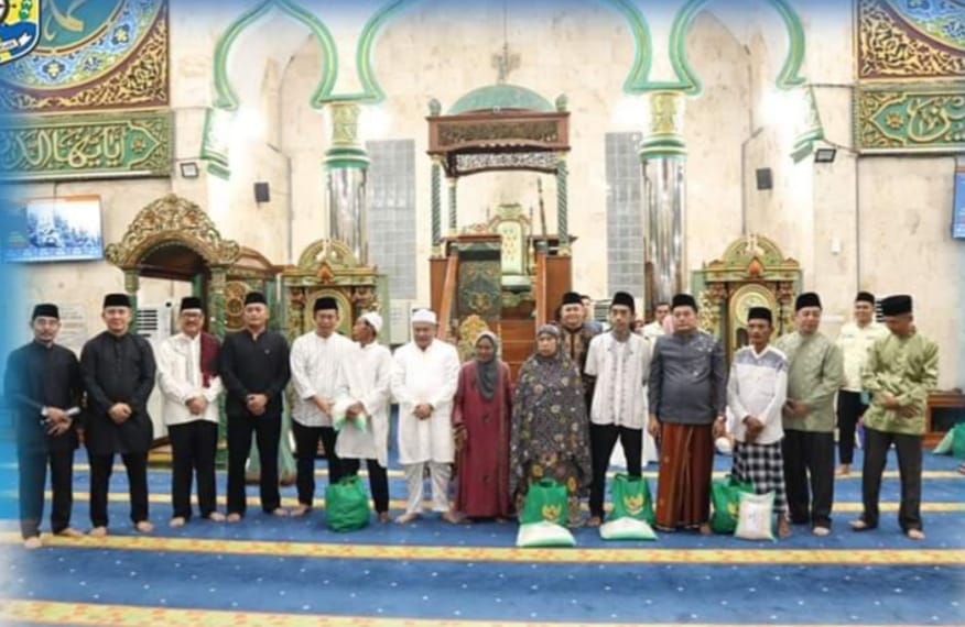 Dalam acara tersebut juga diserahkan bantuan dari pengurus Masjid Agung As-Salam dan pengurus Baznas Kota Lubuklinggau berupa paket sembako kepada masyarakat yang berhak menerimanya.